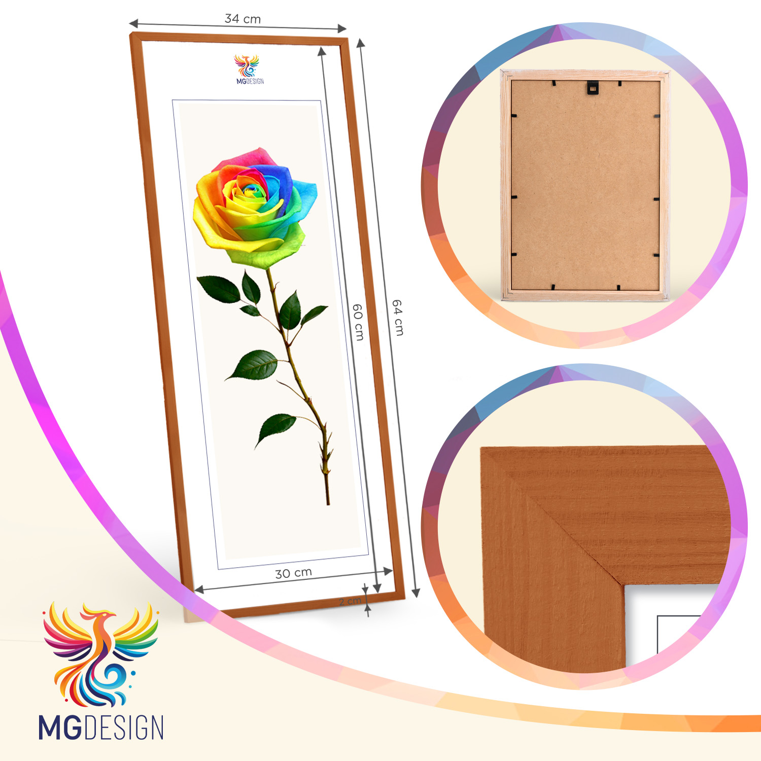 Zestaw drewnianych ramek to estetyczne i uniwersalne rozwiązanie do oprawy zdjęć, plakatów, grafik oraz wydruków dekoracyjnych. Klasyczny, profil ramek nadaje całej kompozycji elegancki wygląd i podkreśla prezentowane motywy, zachowując spójny i uporządkowany charakter aranżacji.