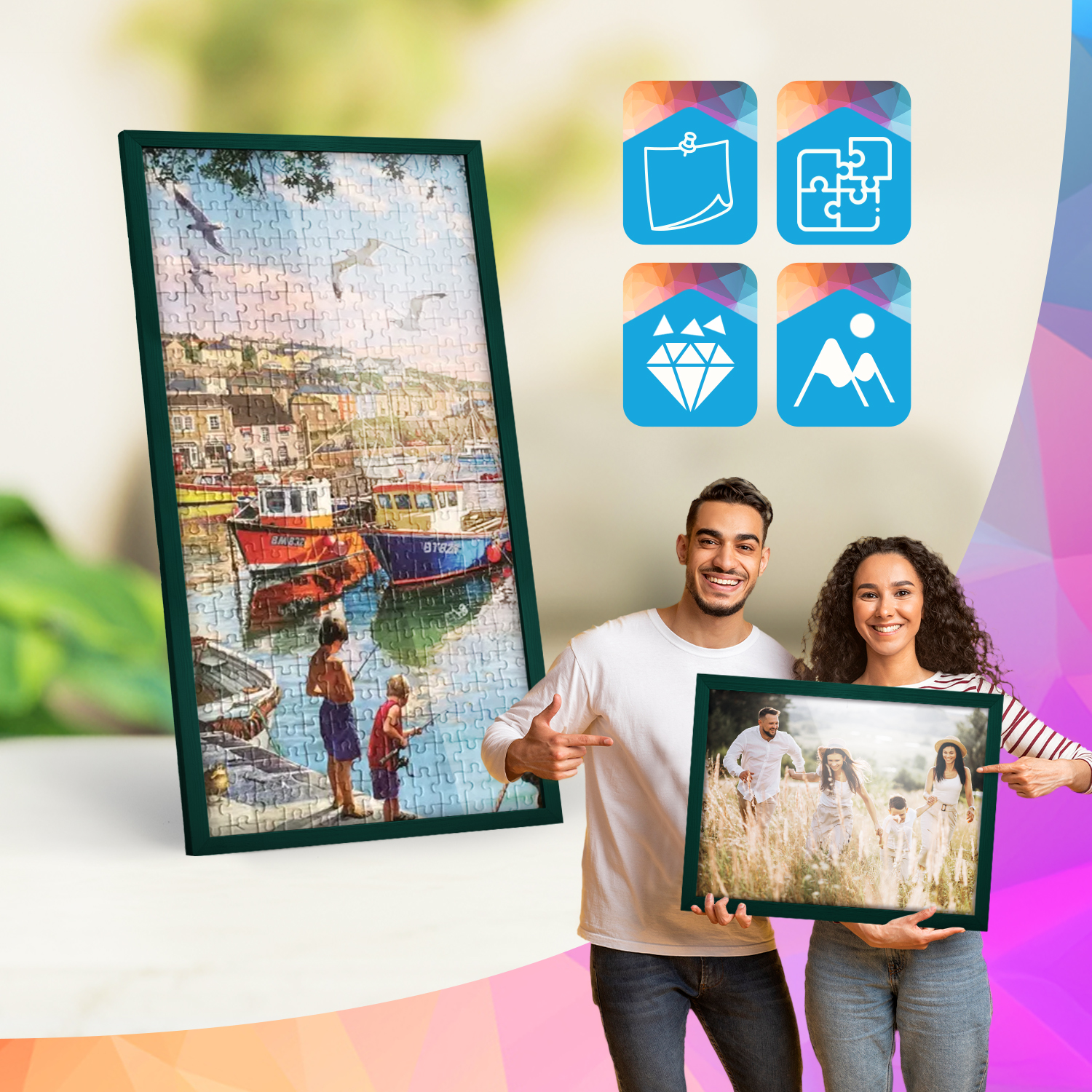 Zestaw drewnianych ramek to estetyczne i uniwersalne rozwiązanie do oprawy zdjęć, plakatów, grafik oraz wydruków dekoracyjnych. Klasyczny, profil ramek nadaje całej kompozycji elegancki wygląd i podkreśla prezentowane motywy, zachowując spójny i uporządkowany charakter aranżacji.