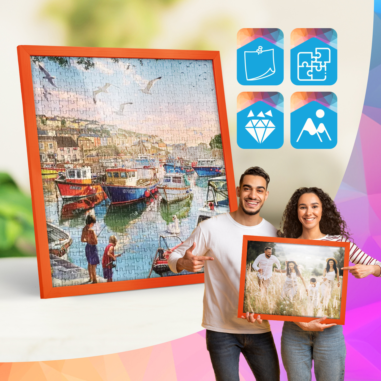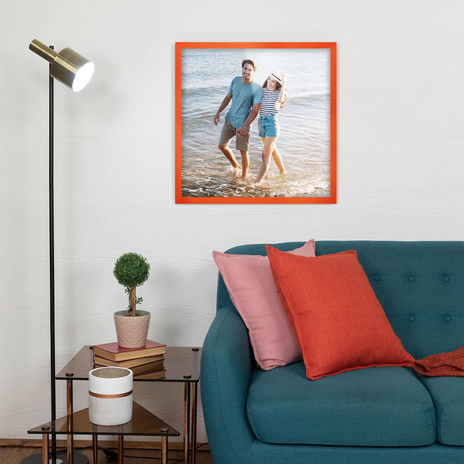 Zestaw 3 szt. ramek na zdjęcia 40 x 40 cm pomarańczowych, z naturalnego drewna