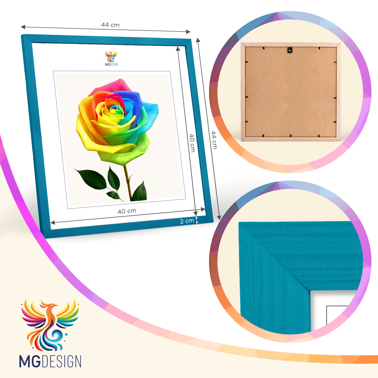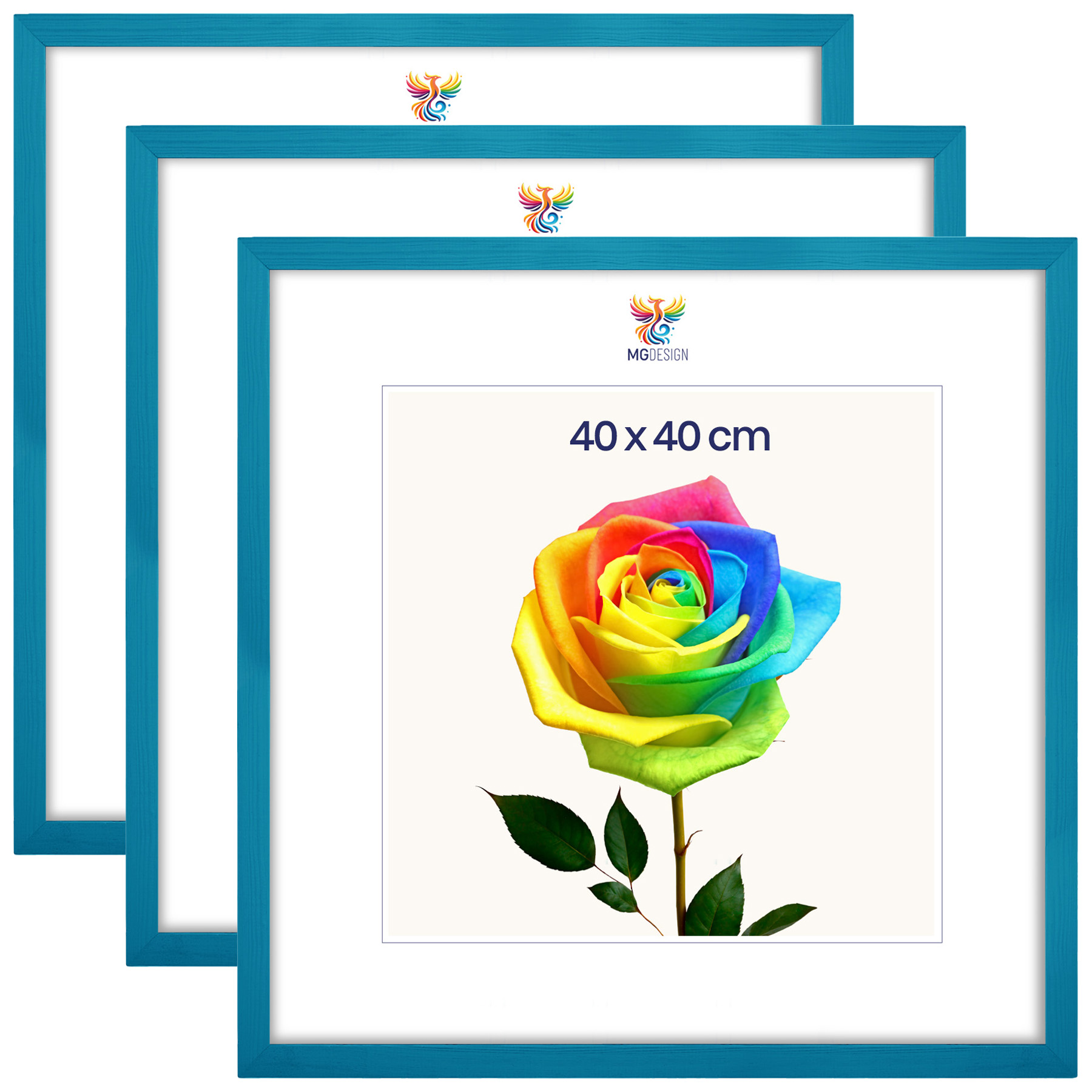 Zestaw 3 szt. ramek na zdjęcia 40 x 40 cm turkusowych, z naturalnego drewna