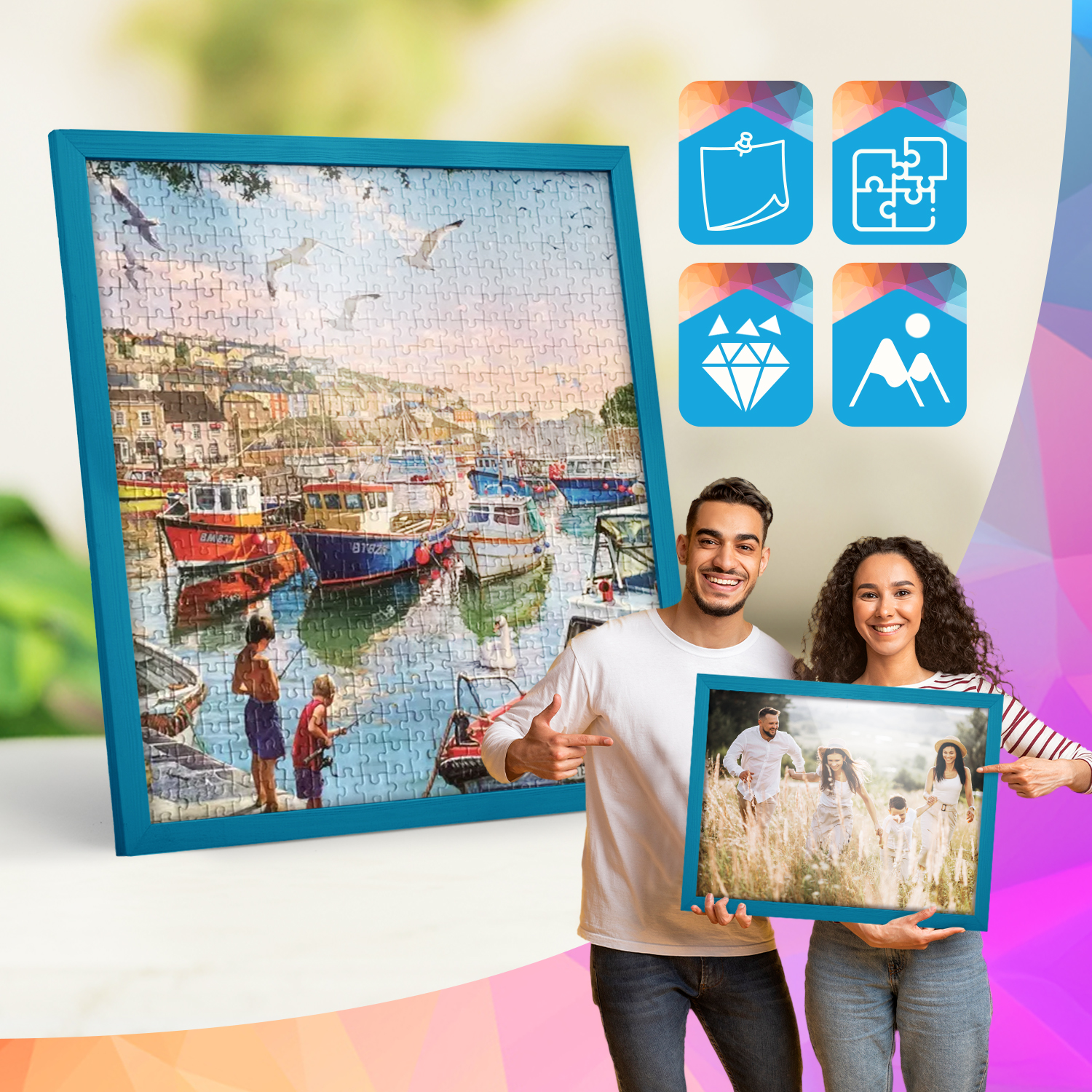 Zestaw drewnianych ramek to estetyczne i uniwersalne rozwiązanie do oprawy zdjęć, plakatów, grafik oraz wydruków dekoracyjnych. Klasyczny, profil ramek nadaje całej kompozycji elegancki wygląd i podkreśla prezentowane motywy, zachowując spójny i uporządkowany charakter aranżacji.
