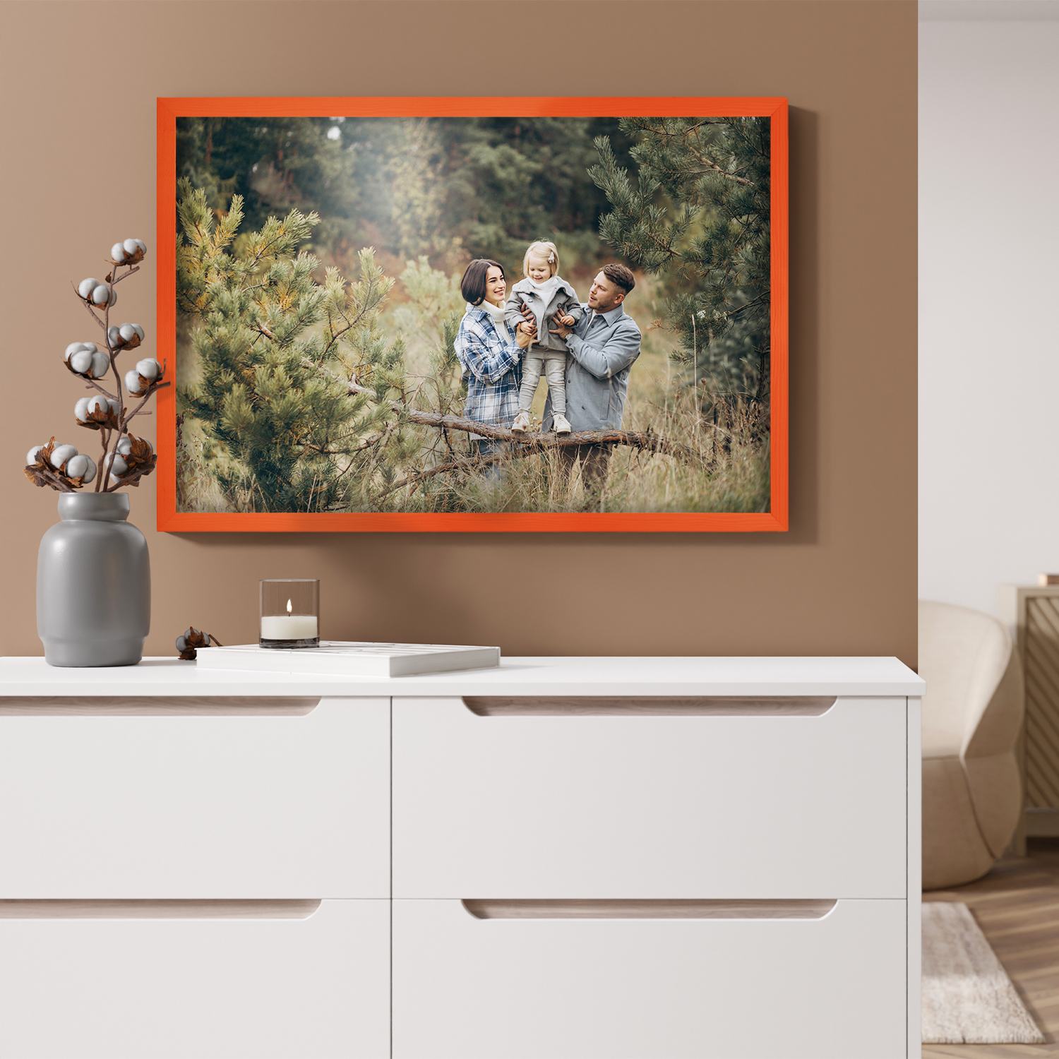 Zestaw 3 szt. ramek na zdjęcia 40 x 60 cm pomarańczowych, z naturalnego drewna