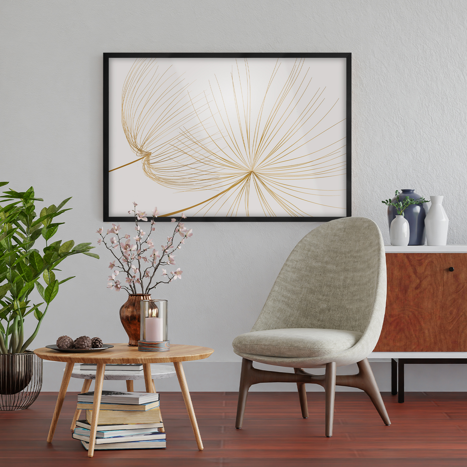Zestaw drewnianych ramek to estetyczne i uniwersalne rozwiązanie do oprawy zdjęć, plakatów, grafik oraz wydruków dekoracyjnych. Klasyczny, profil ramek nadaje całej kompozycji elegancki wygląd i podkreśla prezentowane motywy, zachowując spójny i uporządkowany charakter aranżacji.