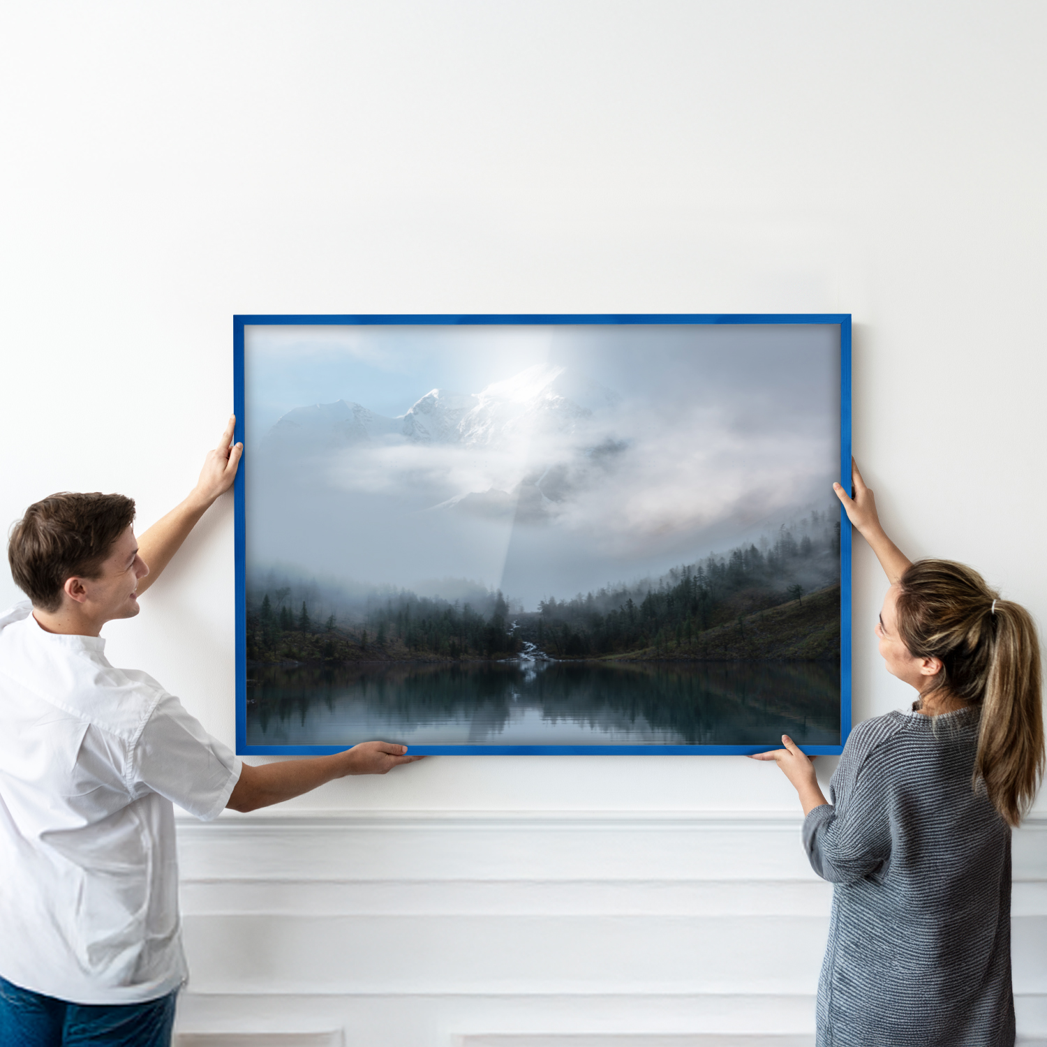 Zestaw 3 szt. ramek na zdjęcia A0 84,1 x 118,9 cm niebieskich, z naturalnego drewna