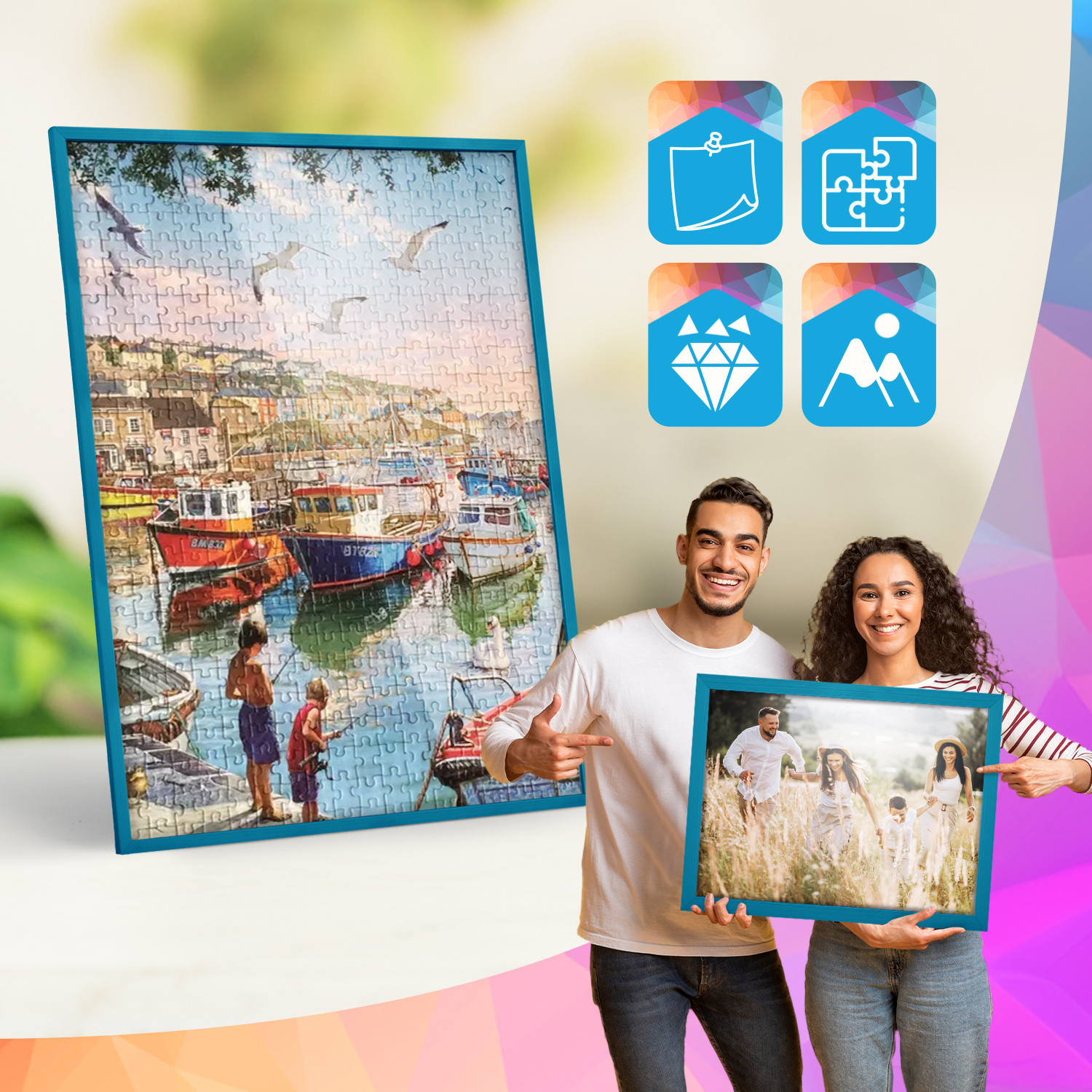 Zestaw drewnianych ramek to estetyczne i uniwersalne rozwiązanie do oprawy zdjęć, plakatów, grafik oraz wydruków dekoracyjnych. Klasyczny, profil ramek nadaje całej kompozycji elegancki wygląd i podkreśla prezentowane motywy, zachowując spójny i uporządkowany charakter aranżacji.
