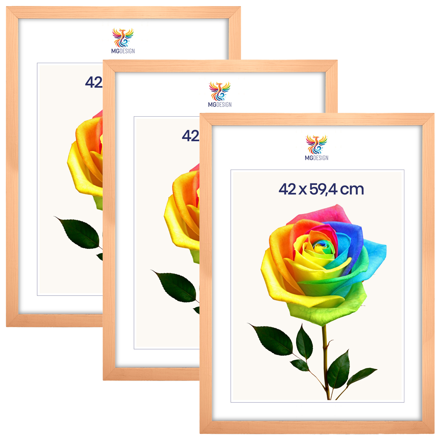 Zestaw 3 szt. ramek na zdjęcia A2 42 x 59,4 cm z naturalnego drewna