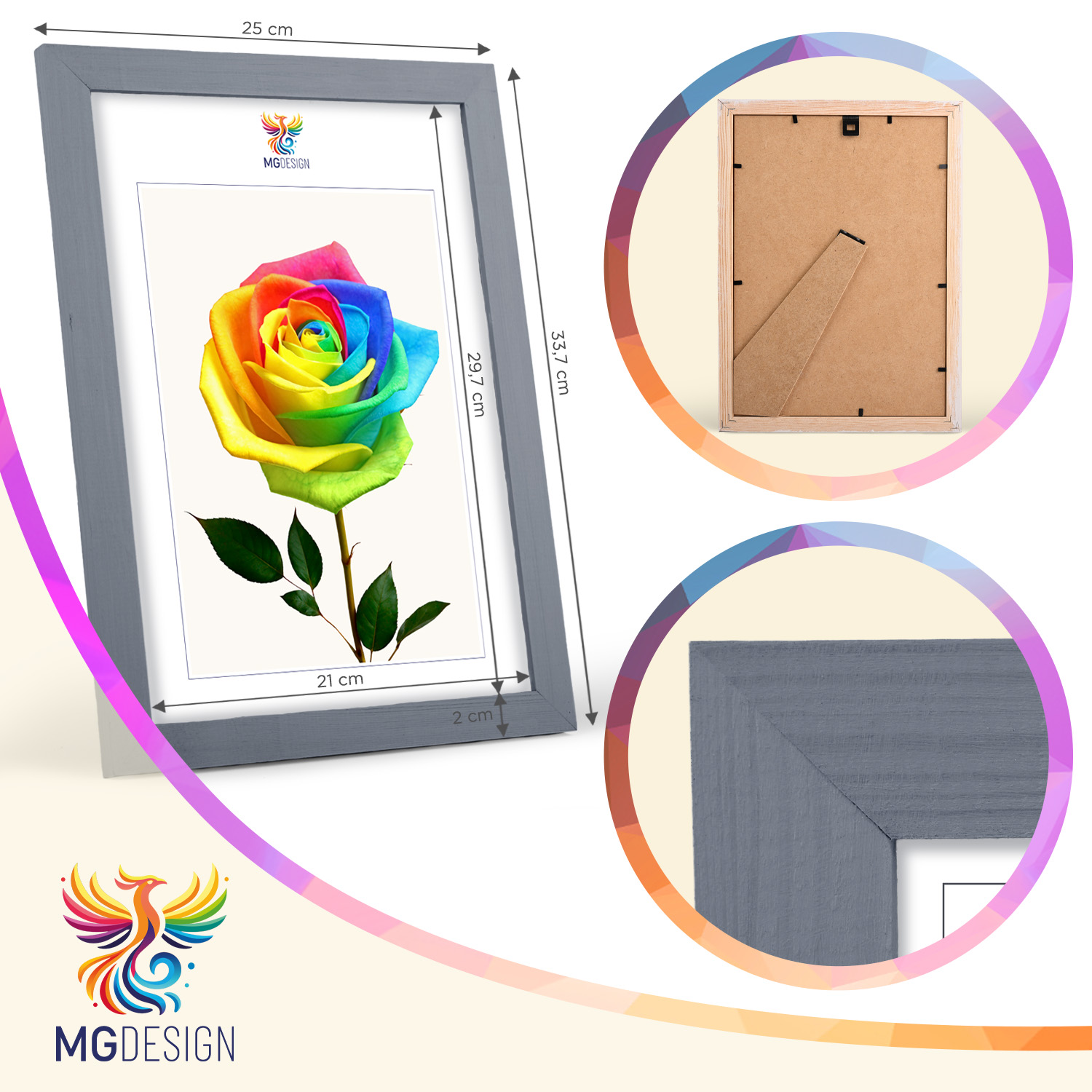 Zestaw 3 szt. ramek na zdjęcia A4 21 x 29,7 cm szarych, z naturalnego drewna