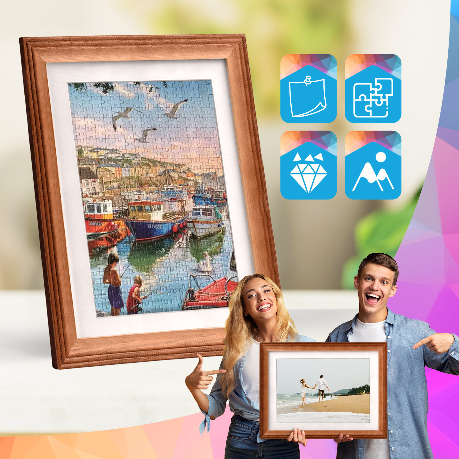 Zestaw frezowanych ramek drewnianych to estetyczne i spójne rozwiązanie do oprawy zdjęć, plakatów, grafik oraz wydruków artystycznych. Dekoracyjny, precyzyjnie wykonany profil ram nadaje całej kompozycji elegancki charakter i podkreśla prezentowane motywy, zachowując uporządkowany i harmonijny wygląd aranżacji.