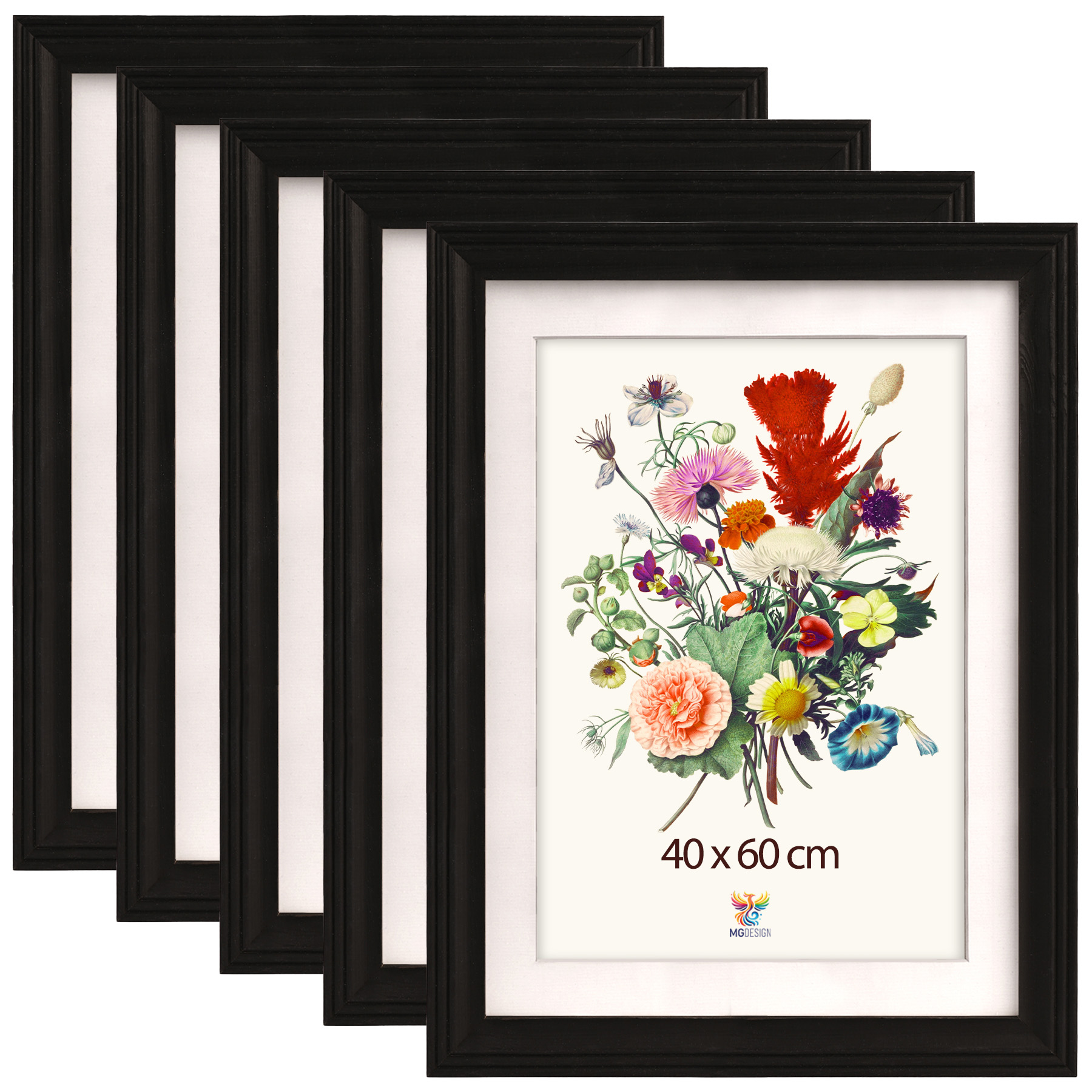 Zestaw 5 szt. frezowanych ramek 40 x 60 cm w kolorze czarnym