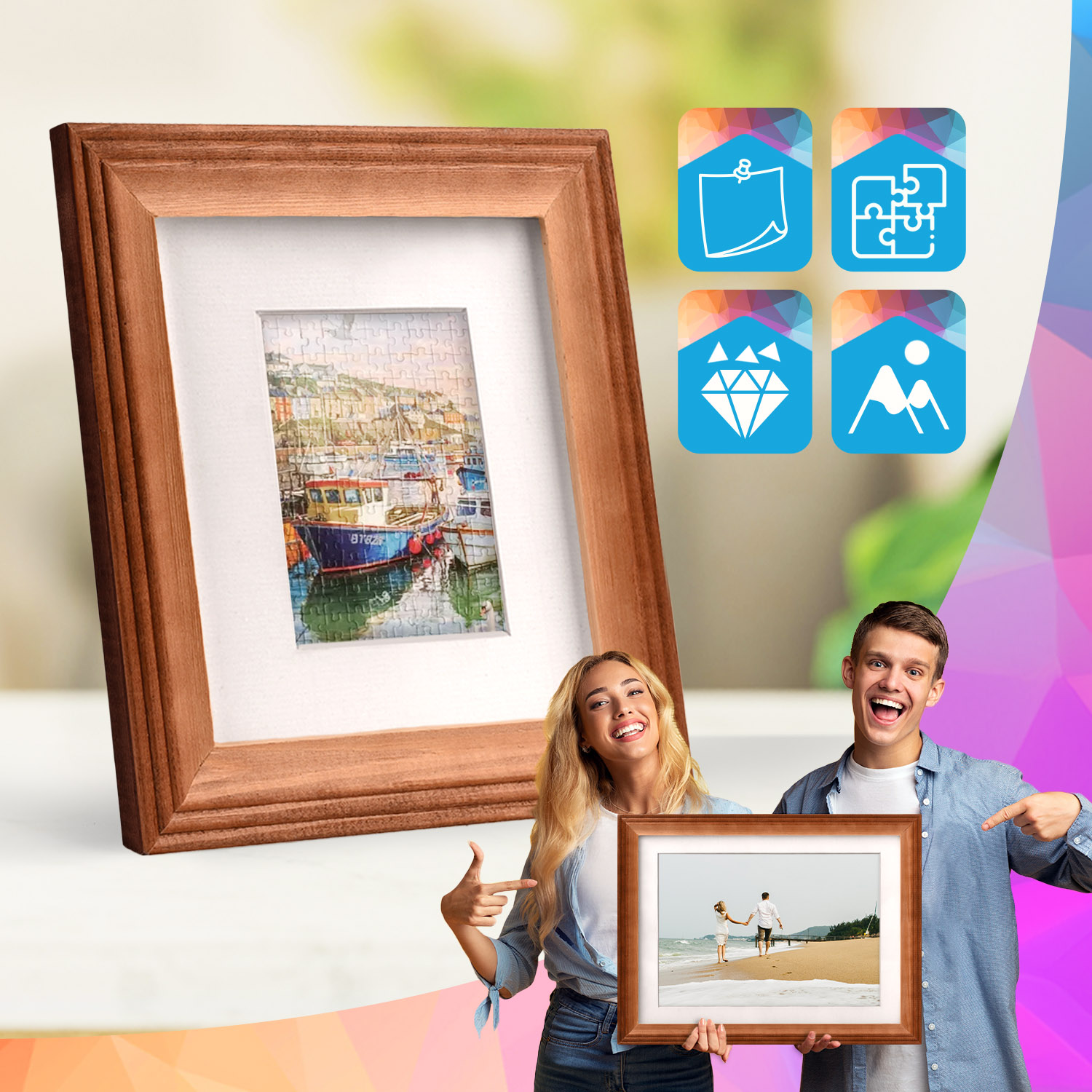 Zestaw frezowanych ramek drewnianych to estetyczne i spójne rozwiązanie do oprawy zdjęć, plakatów, grafik oraz wydruków artystycznych. Dekoracyjny, precyzyjnie wykonany profil ram nadaje całej kompozycji elegancki charakter i podkreśla prezentowane motywy, zachowując uporządkowany i harmonijny wygląd aranżacji.