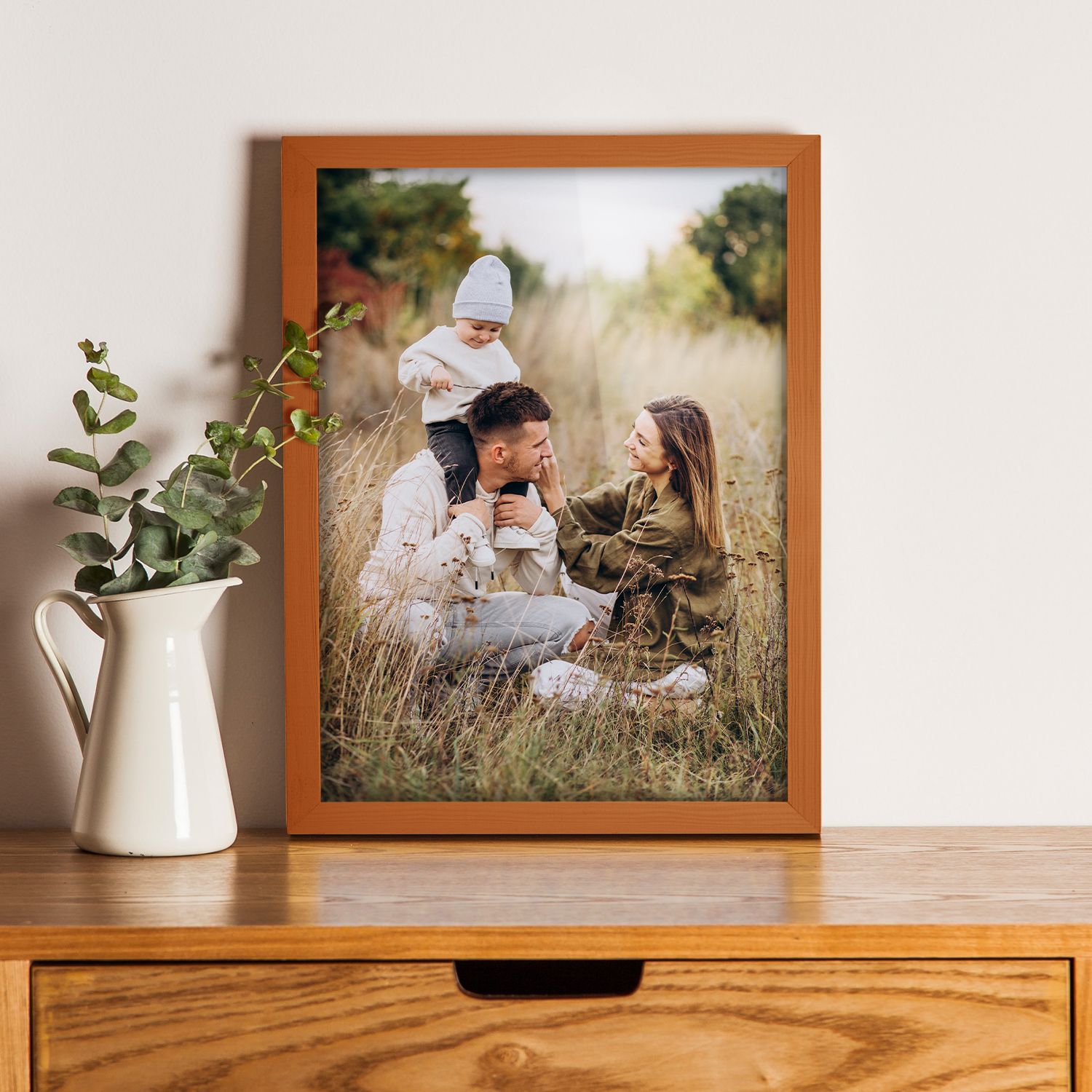 Zestaw drewnianych ramek to estetyczne i uniwersalne rozwiązanie do oprawy zdjęć, plakatów, grafik oraz wydruków dekoracyjnych. Klasyczny, profil ramek nadaje całej kompozycji elegancki wygląd i podkreśla prezentowane motywy, zachowując spójny i uporządkowany charakter aranżacji.
