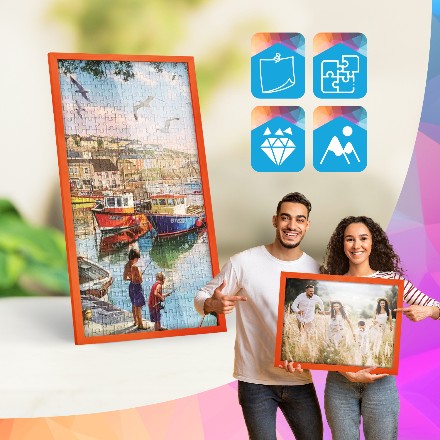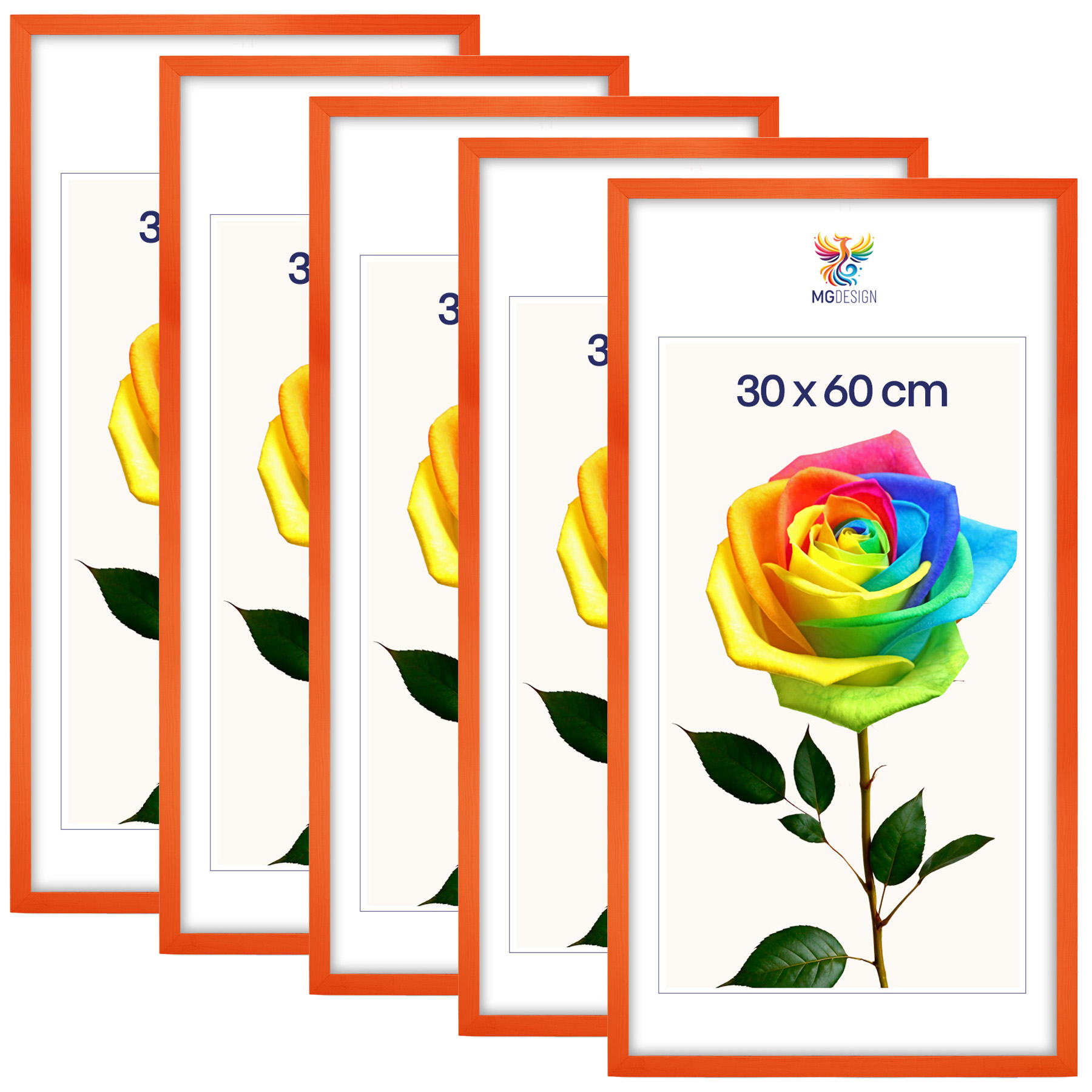 Zestaw 5 szt. ramek na zdjęcia 30 x 60 cm pomarańczowych, z naturalnego drewna