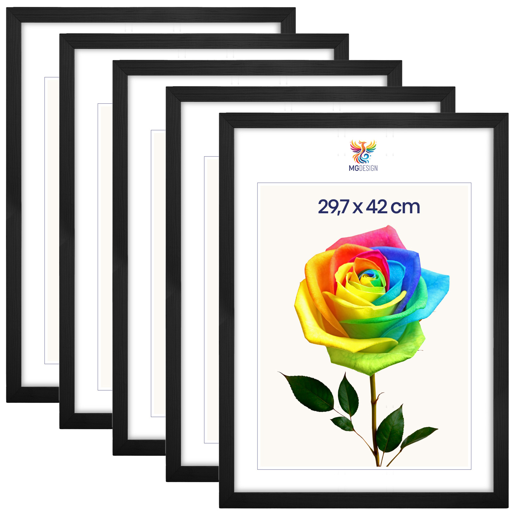 Zestaw 5 szt. ramek na zdjęcia A5 29,7 x 42 cm czarnych, z naturalnego drewna