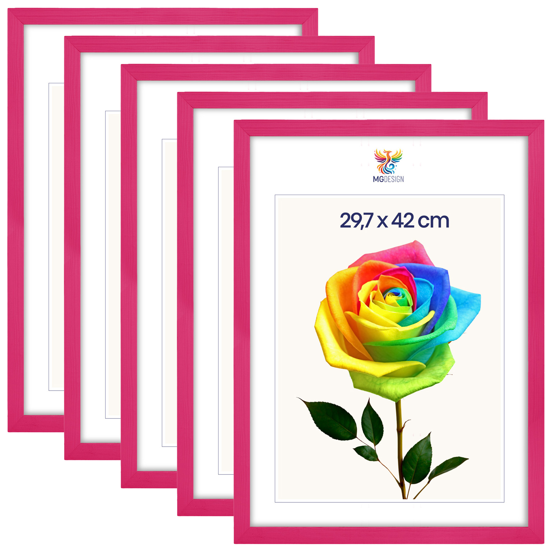 Zestaw 5 szt. ramek na zdjęcia A5 29,7 x 42 cm różowych, z naturalnego drewna