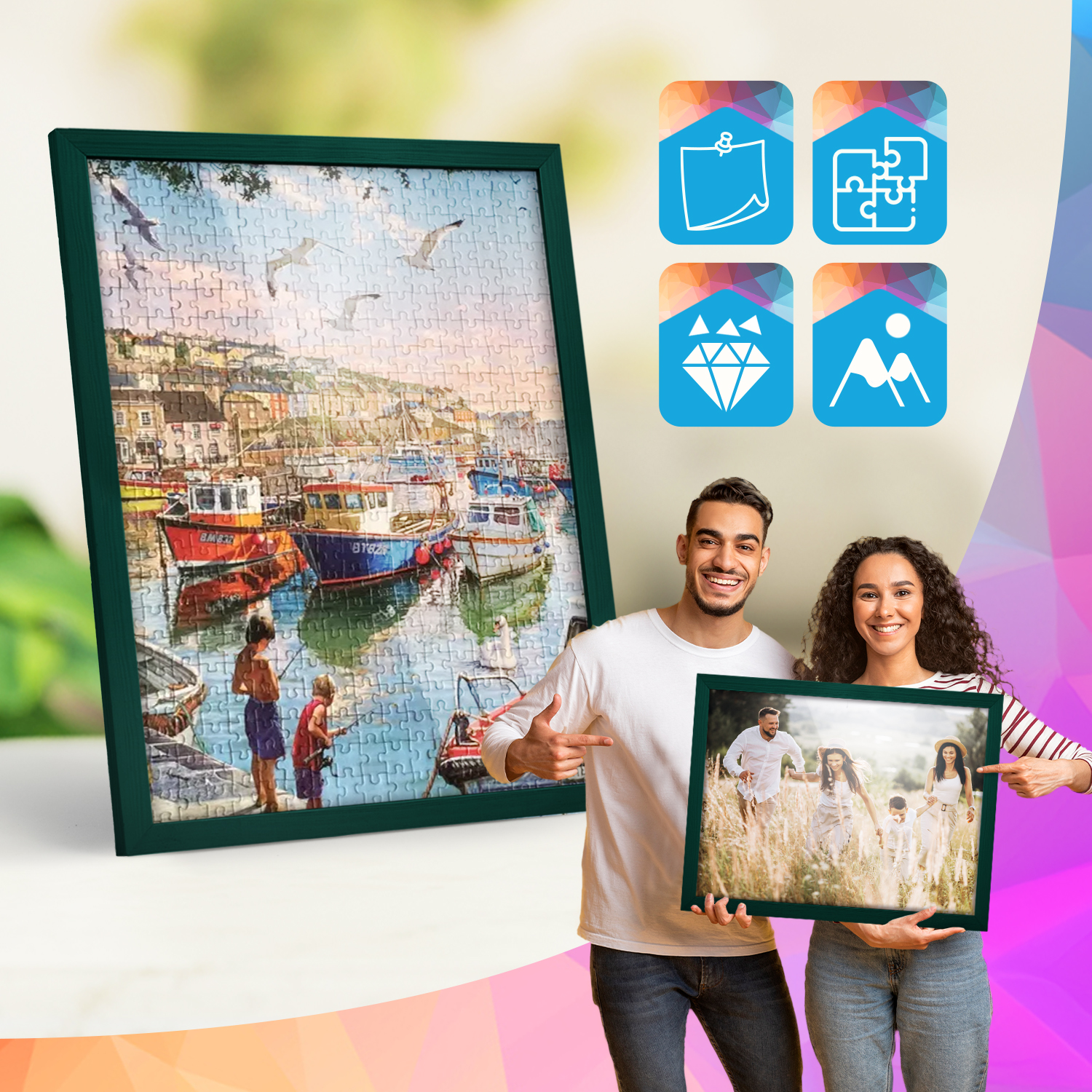Zestaw drewnianych ramek to estetyczne i uniwersalne rozwiązanie do oprawy zdjęć, plakatów, grafik oraz wydruków dekoracyjnych. Klasyczny, profil ramek nadaje całej kompozycji elegancki wygląd i podkreśla prezentowane motywy, zachowując spójny i uporządkowany charakter aranżacji.