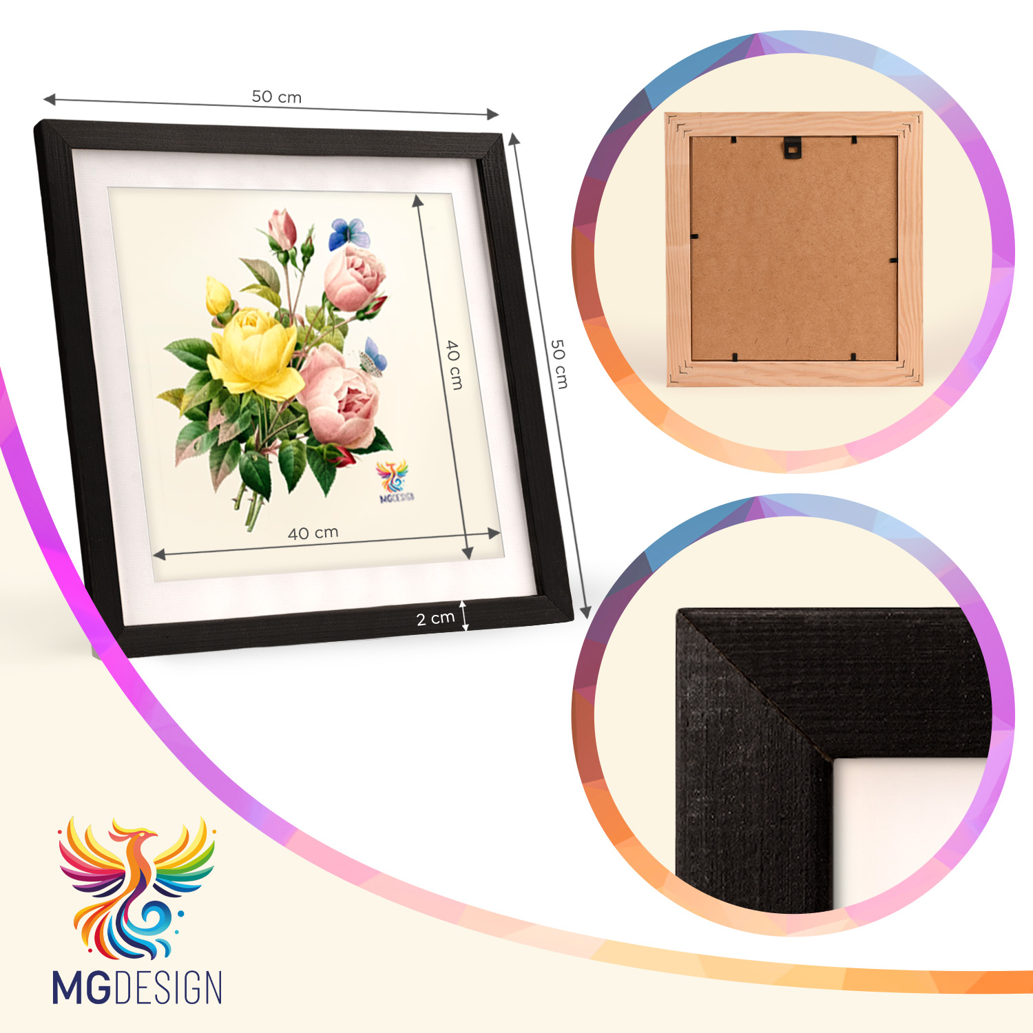 W zestawie znajduje się passe-partout do każdej ramki, tworzące estetyczny odstęp pomiędzy grafiką a plexi i wzmacniające efekt wizualny całej kompozycji. Stabilna płyta HDF oraz solidne metalowe zawieszki umożliwiają szybki montaż oraz łatwą wymianę zawartości bez użycia narzędzi.