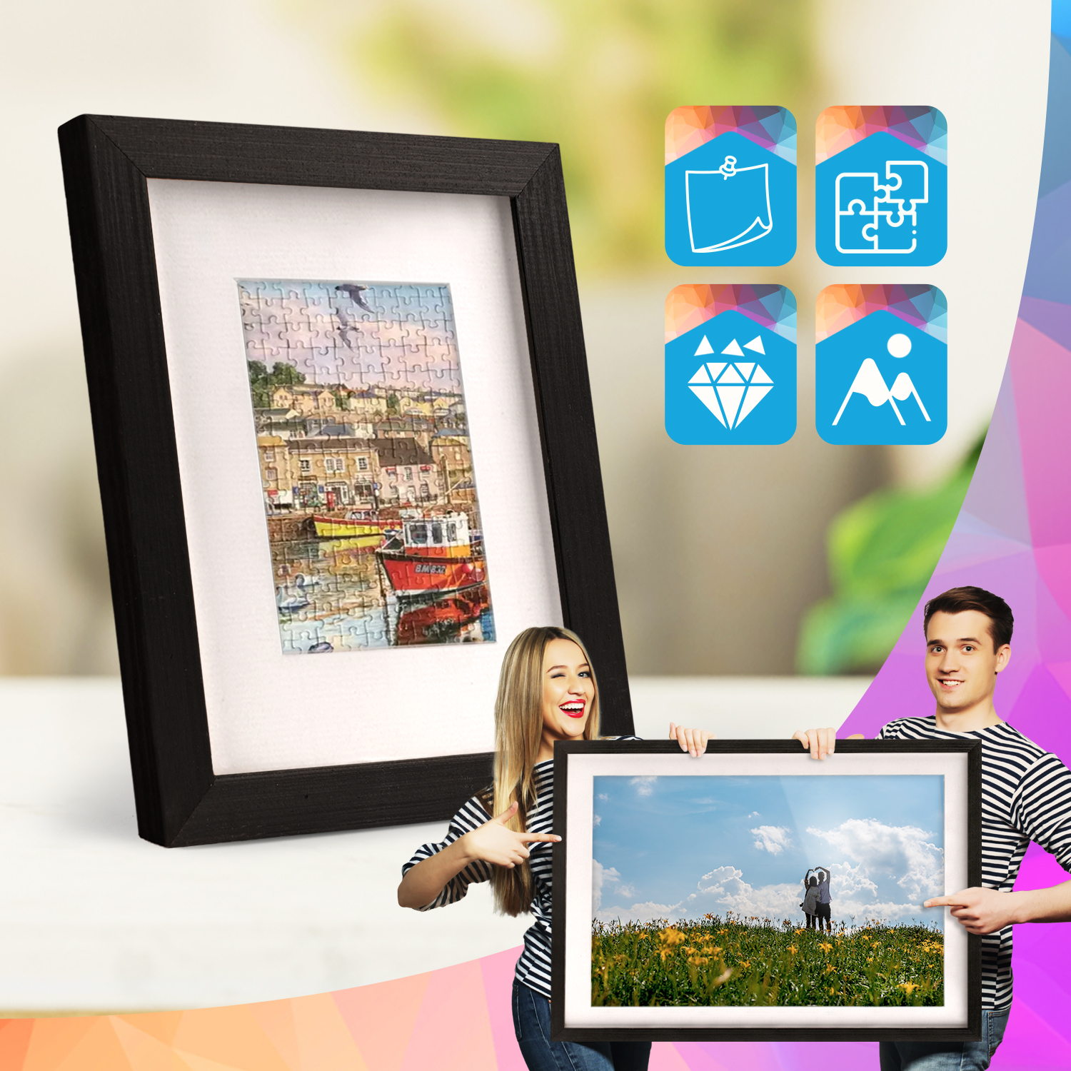 Ramki mogą być ustawione na meblach lub zawieszone na ścianie. Dzięki wysokiemu profilowi uzyskują nowoczesny efekt odsunięcia obrazów od powierzchni, który dobrze prezentuje się zarówno w domowych, jak i komercyjnych wnętrzach.