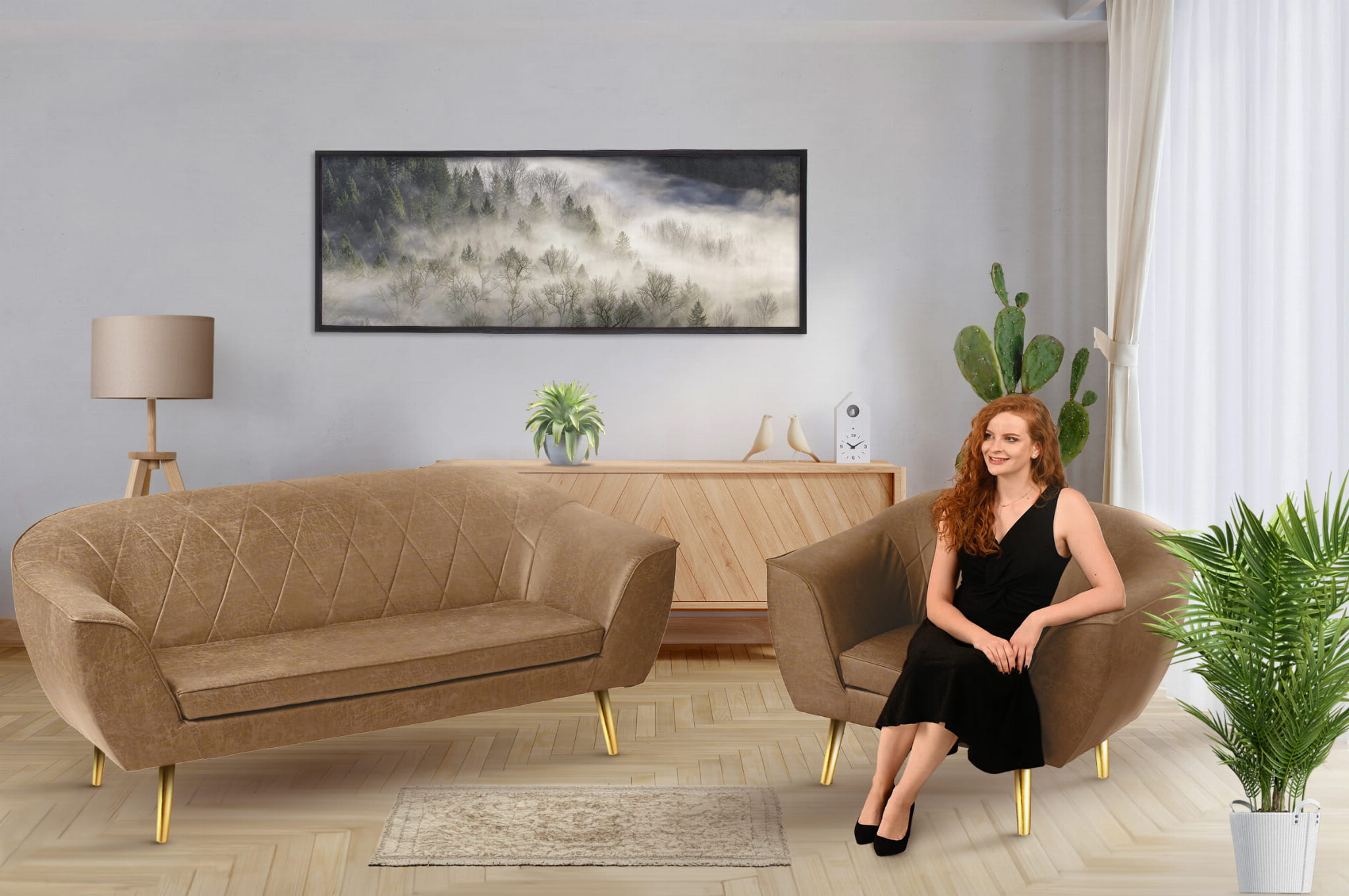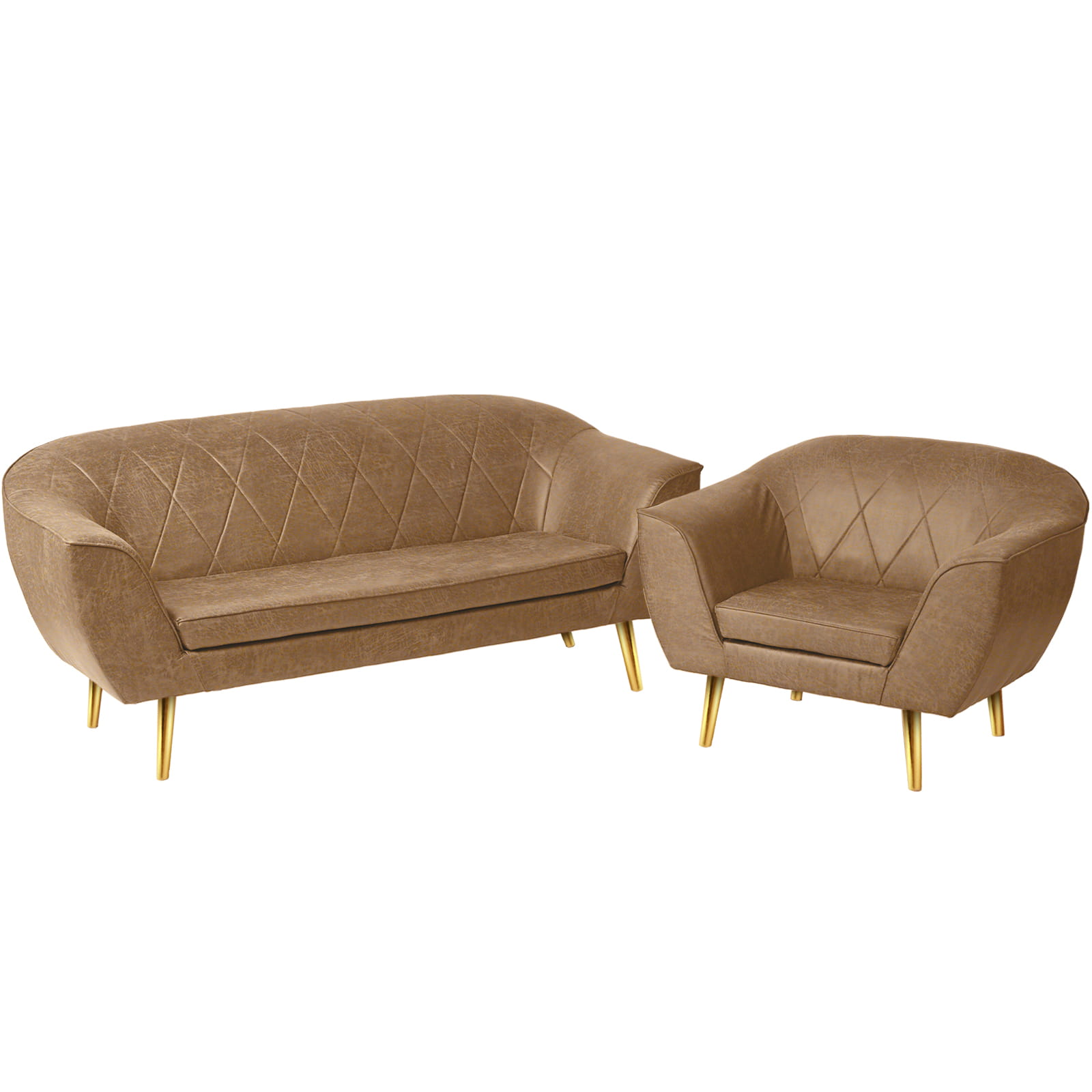 Luksus w Twoim Salonie: Fotel i Sofa z Ekoskóry ze Złotymi Nóżkami i Przeszyciami