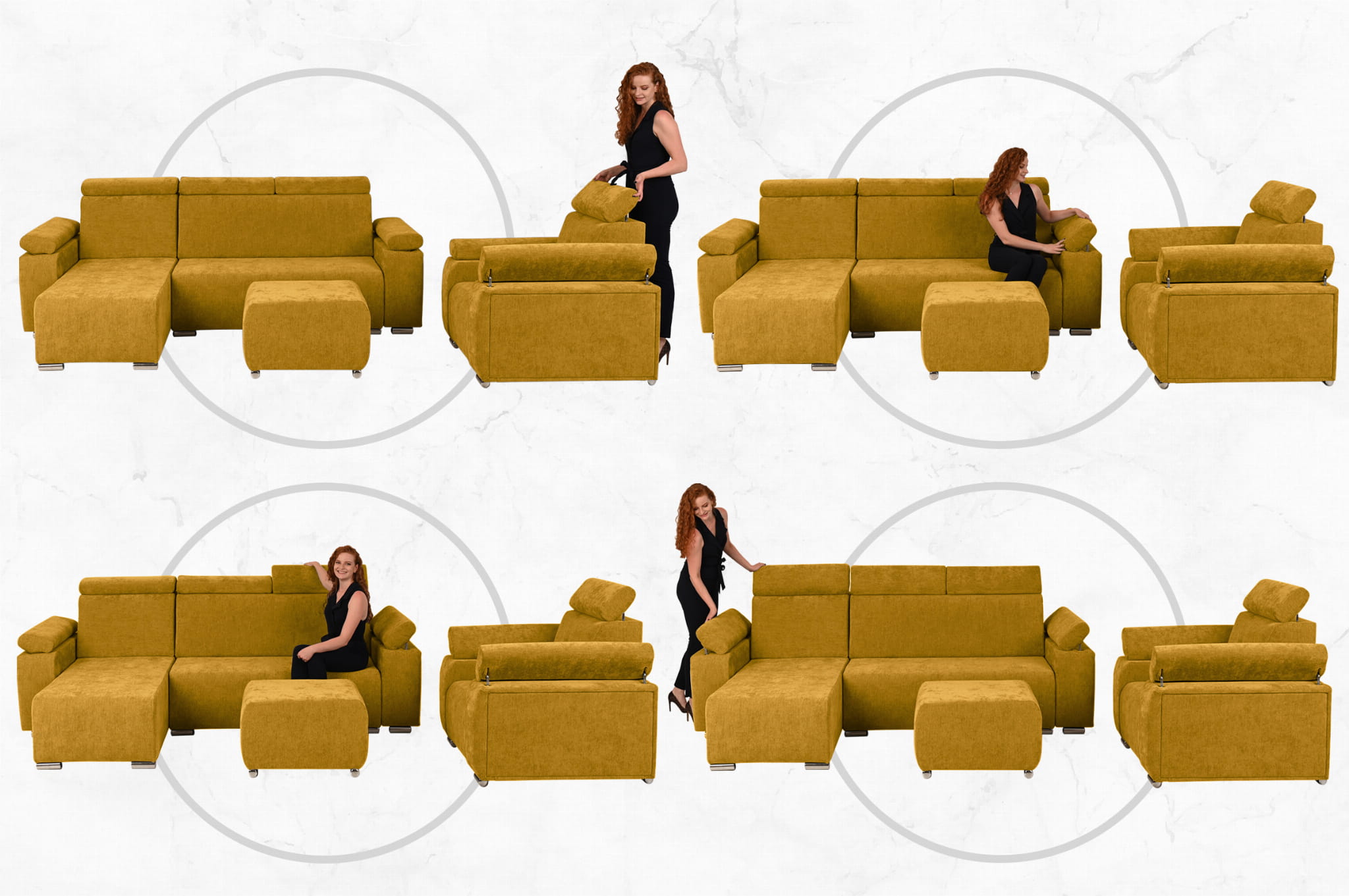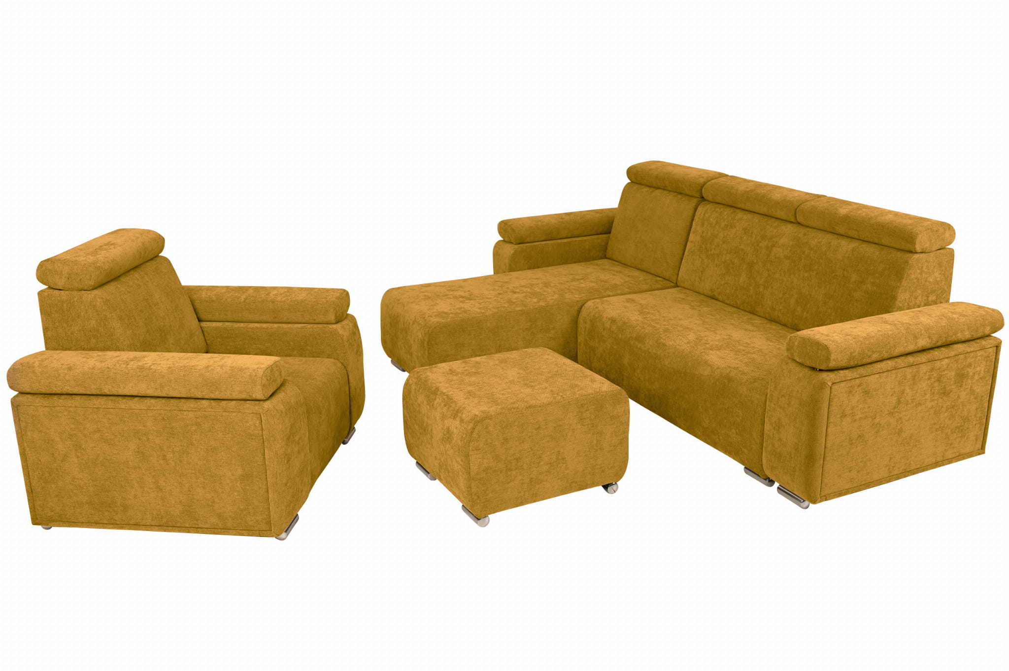 Komfort i Styl: Zestaw Mebli z Regulowanymi Zagłówkami i Podłokietnikami – Fotel, Narożnik i Pufa